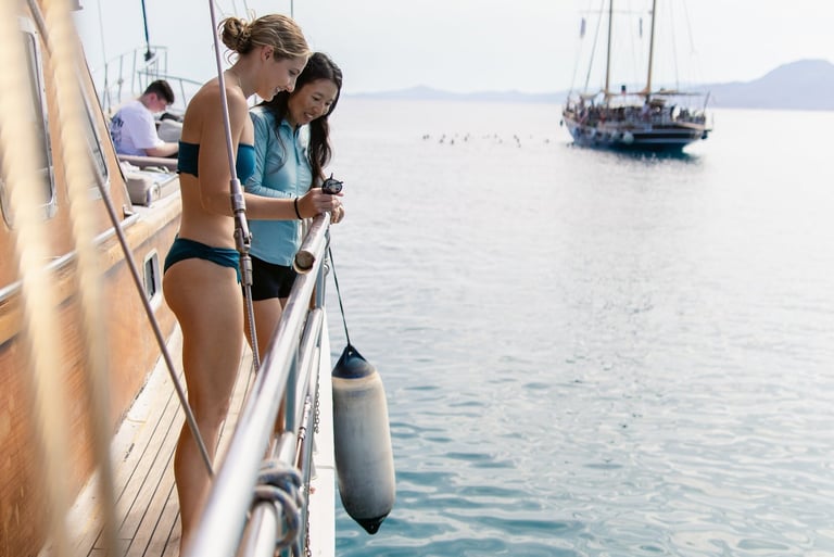 • Two swim stops in crystal-clear waters, including Hydroussa Island and Vouliagmeni.